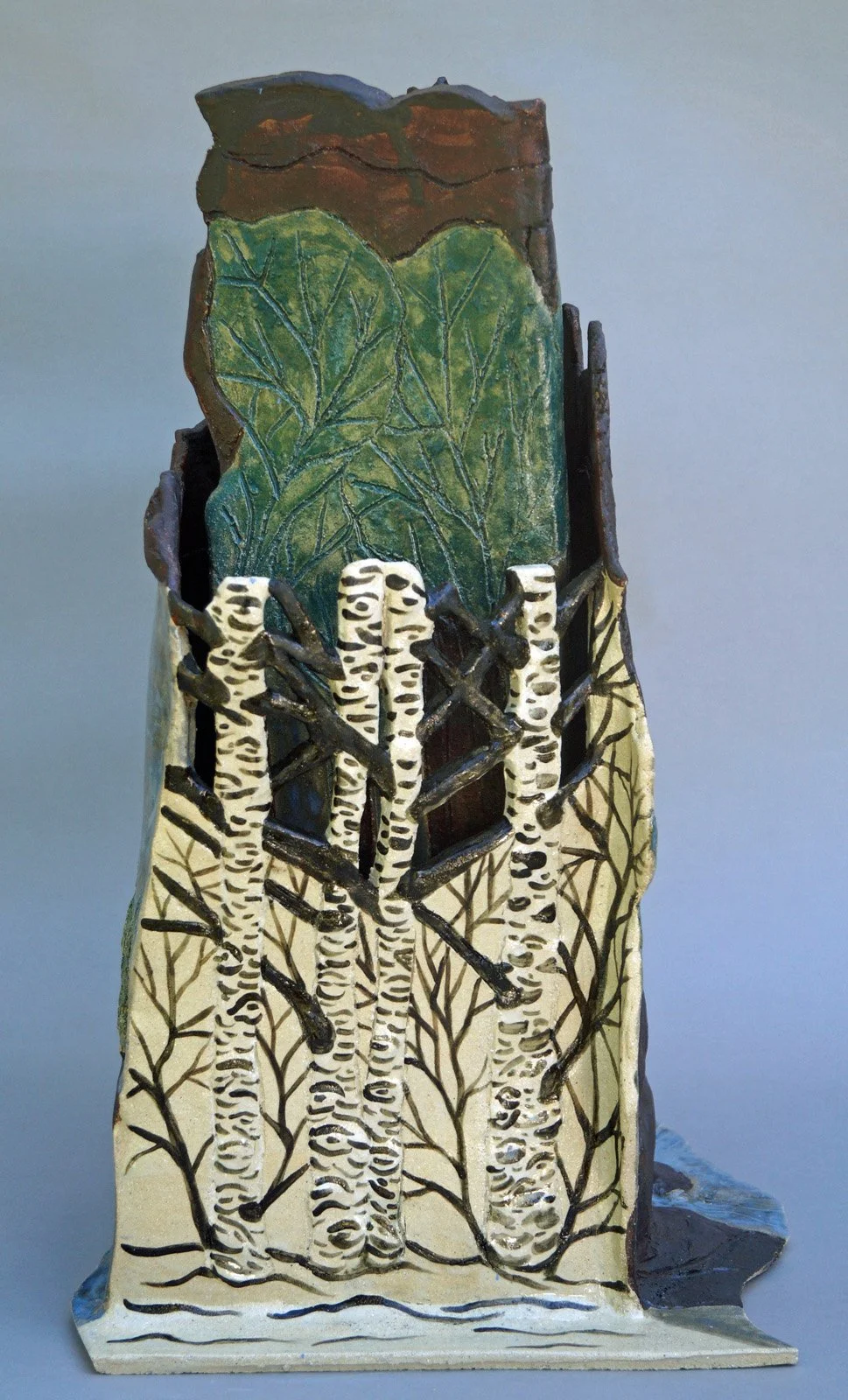 Portage Hill Art Gallery was founded in 1982 as a venue to showcase the artwork of Audrey Kay Dowling and many of the fine artists from the Chautauqua region. Since its humble beginnings in the parlor of her 1830s Greek Revival home, the gallery has grown to represent the regional and national work of over 100 artists in three rooms of the house, including a dedicated gallery space added in 1995. Portage Hill Art Gallery features Audrey Kay Dowling’s work in ceramics, printmaking, mixed media, and painting.